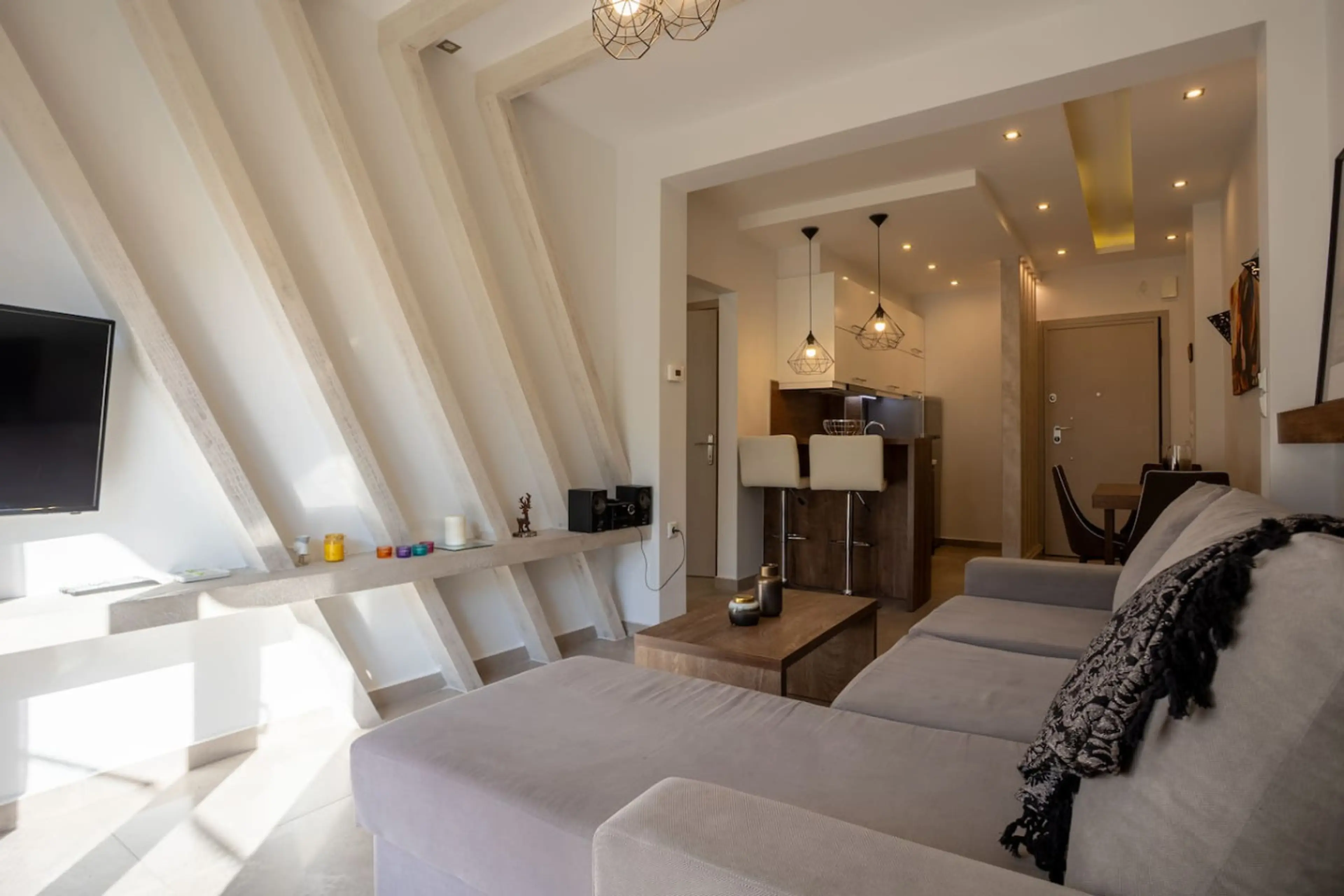 Keep it simple at this peaceful and centrally-located place. The apartment features a welcoming living area designed for relaxing after a day in the city. A comfortable sofa, flat-screen TV, and sound system create an easy place to unwind, while large windows keep the space bright and airy. The sof...